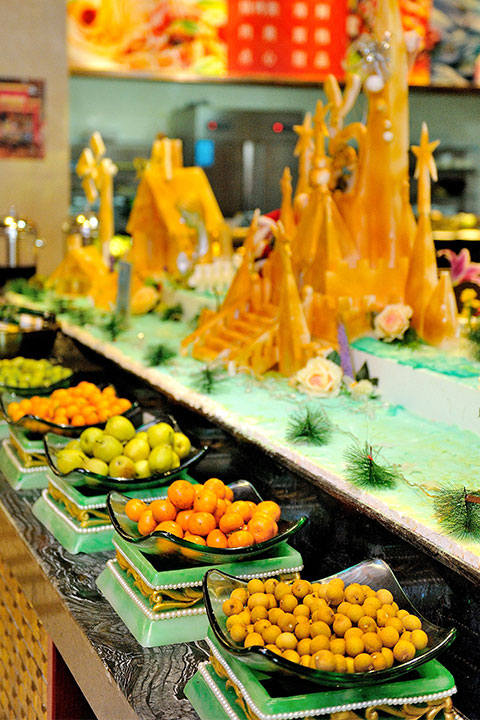 酒店擁有風格迥異的各式餐廳:“世紀廳”大型宴會廳豪華典雅,是舉辦各類活動及婚宴、壽宴、滿月宴的首選; 32間中餐包廂富麗堂皇,是您宴請貴賓的理想去處,您可以品嘗到原汁原味的各式海鮮;大堂吧供應價廉物美的各式飲品、茶點,是賓客休閑會友的好去處。